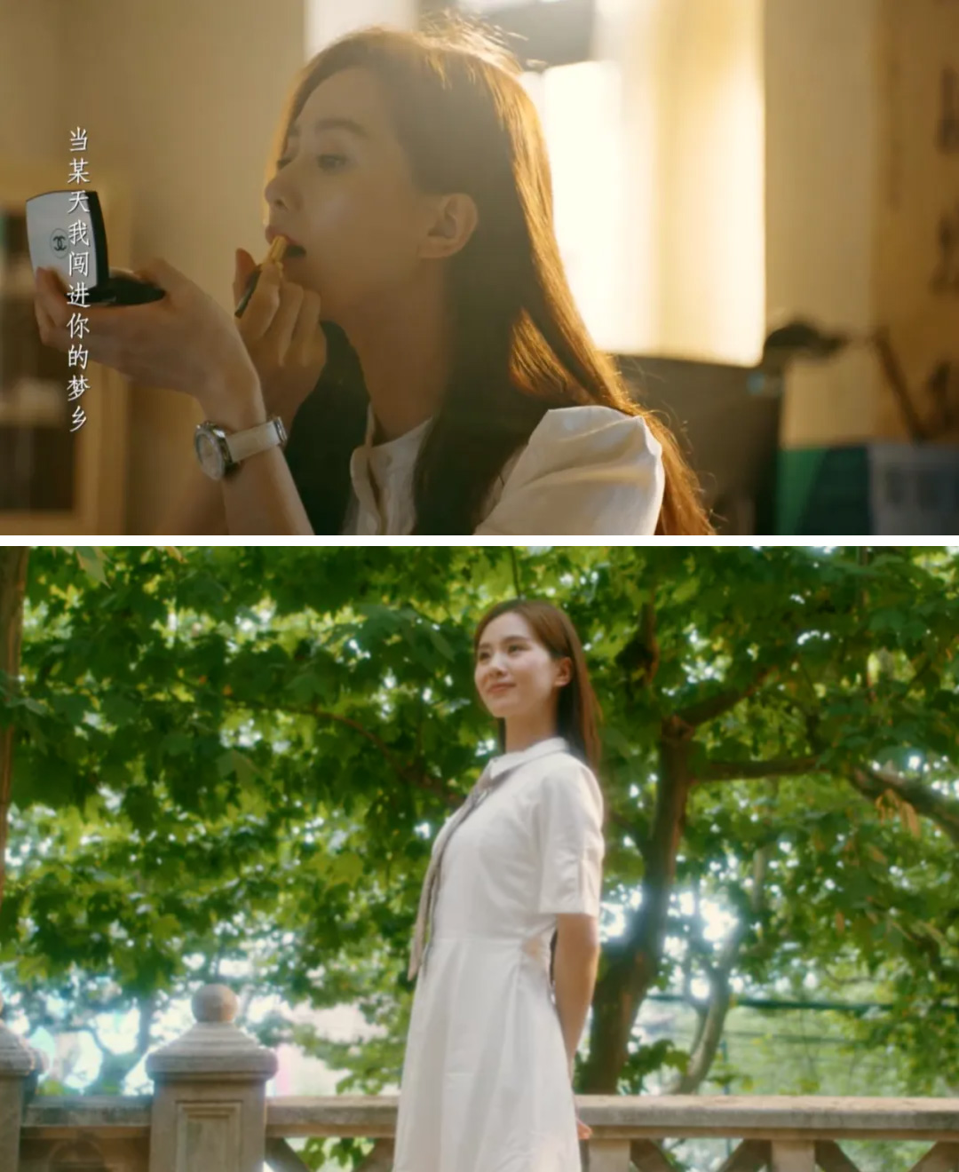 刘诗诗饰演的蒋南孙,一出场便是一袭白裙,对着小镜子涂抹口红,让人一眼就看到了一个可爱单纯的“大家闺秀”。